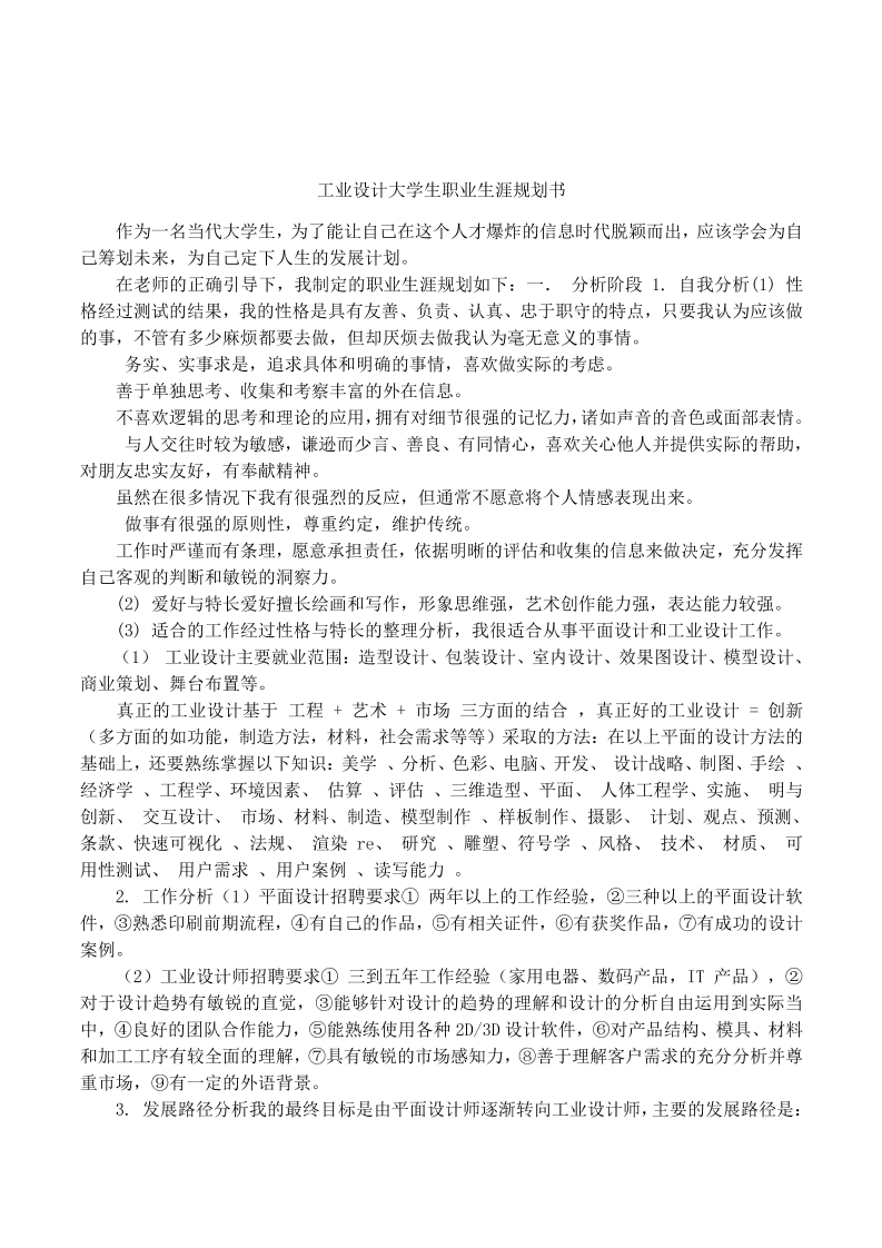 工业设计专业职业生涯规划书 (1)