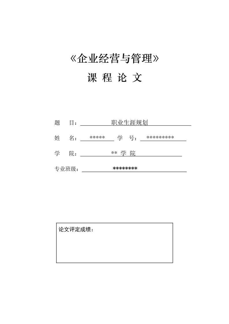 个人的职业生涯规划书模板样本