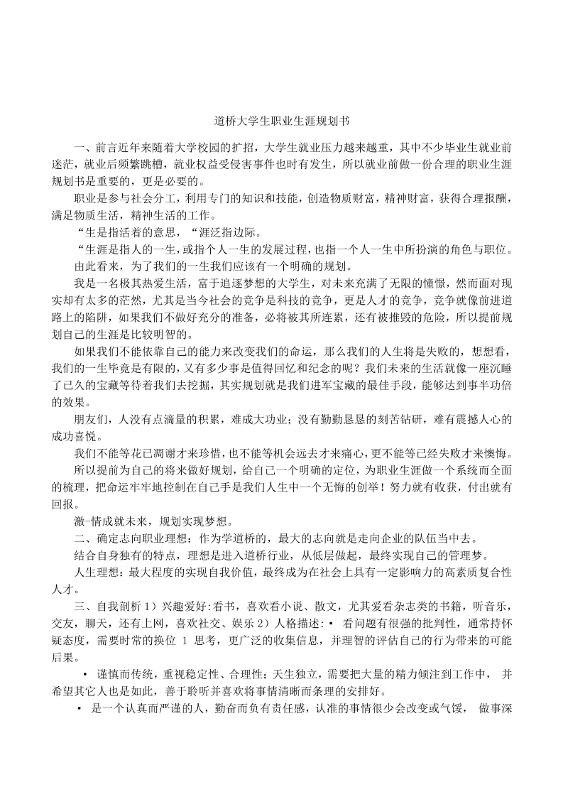 道桥大学生职业生涯规划书