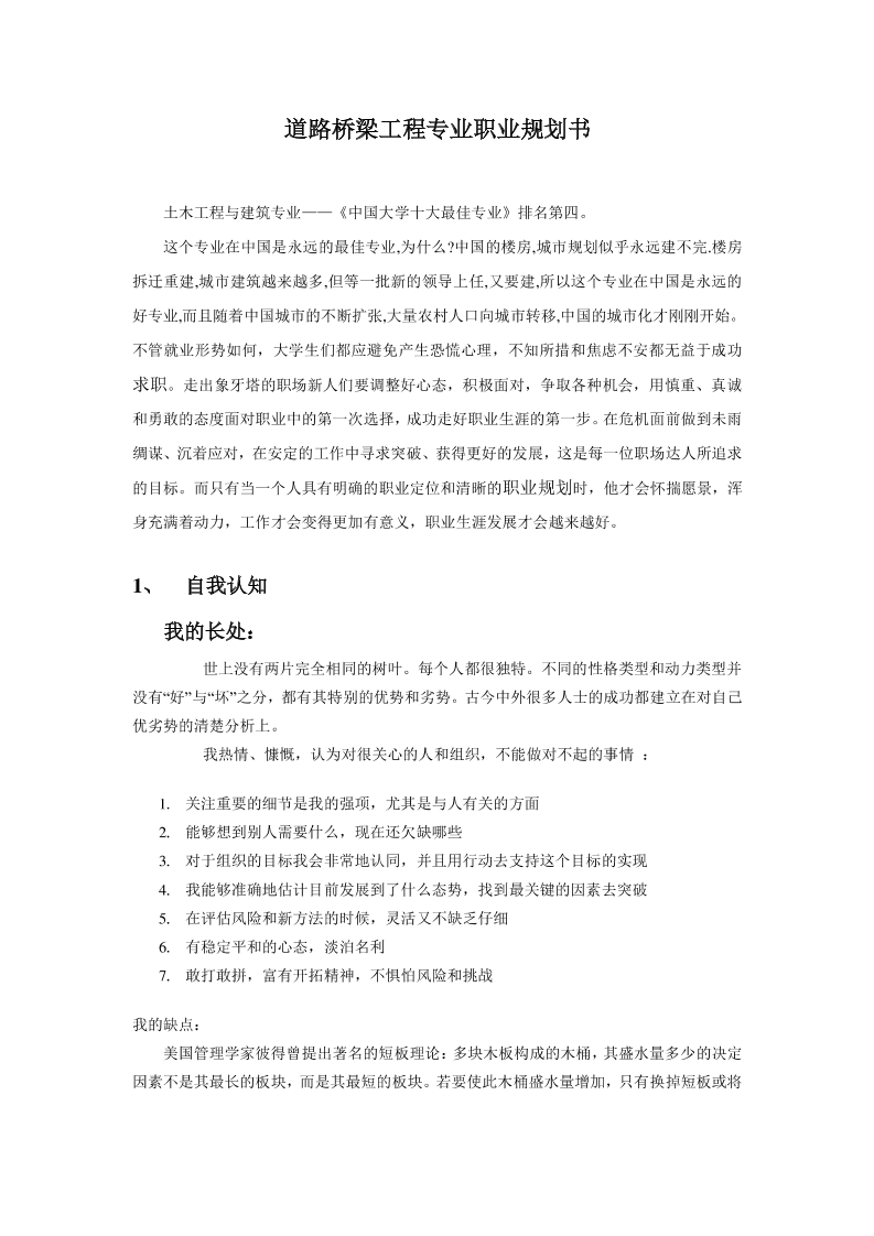 道路桥梁工程专业职业规划书