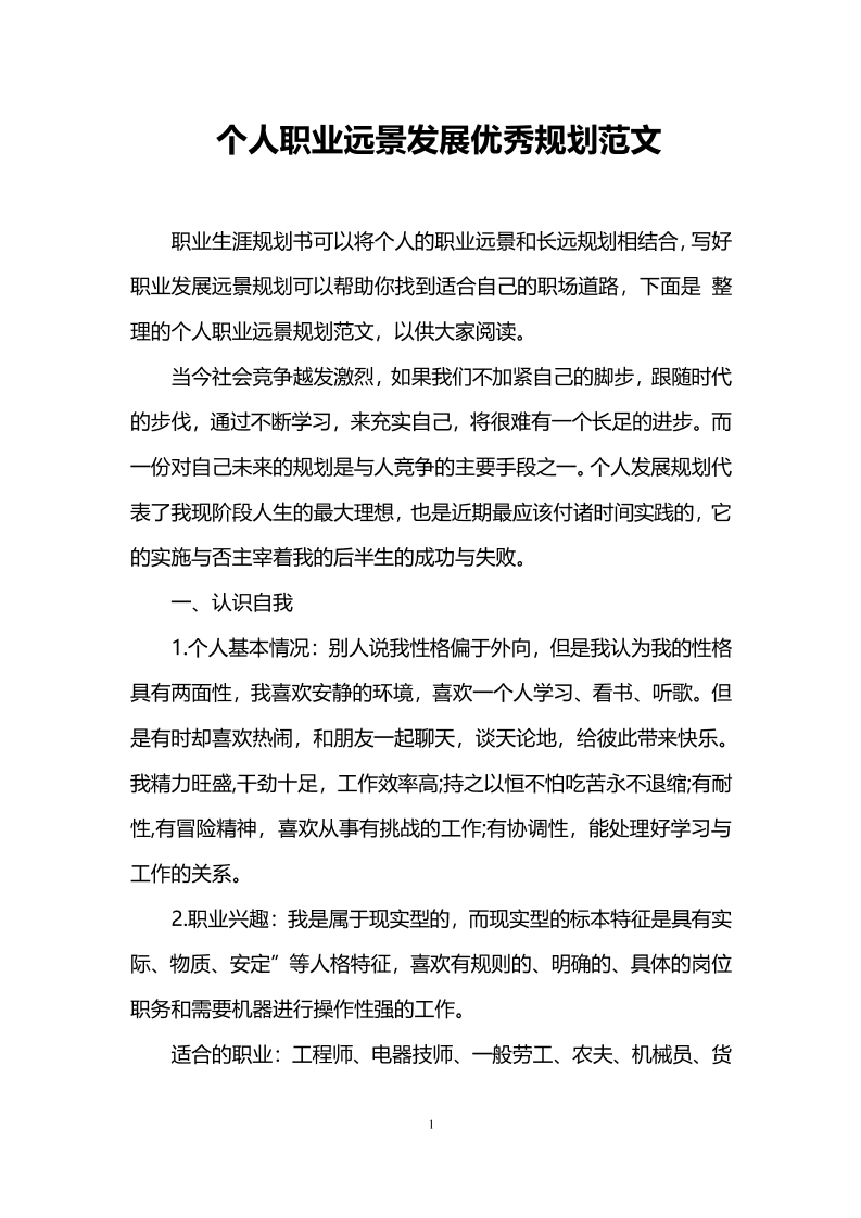 个人职业远景发展优秀规划范文