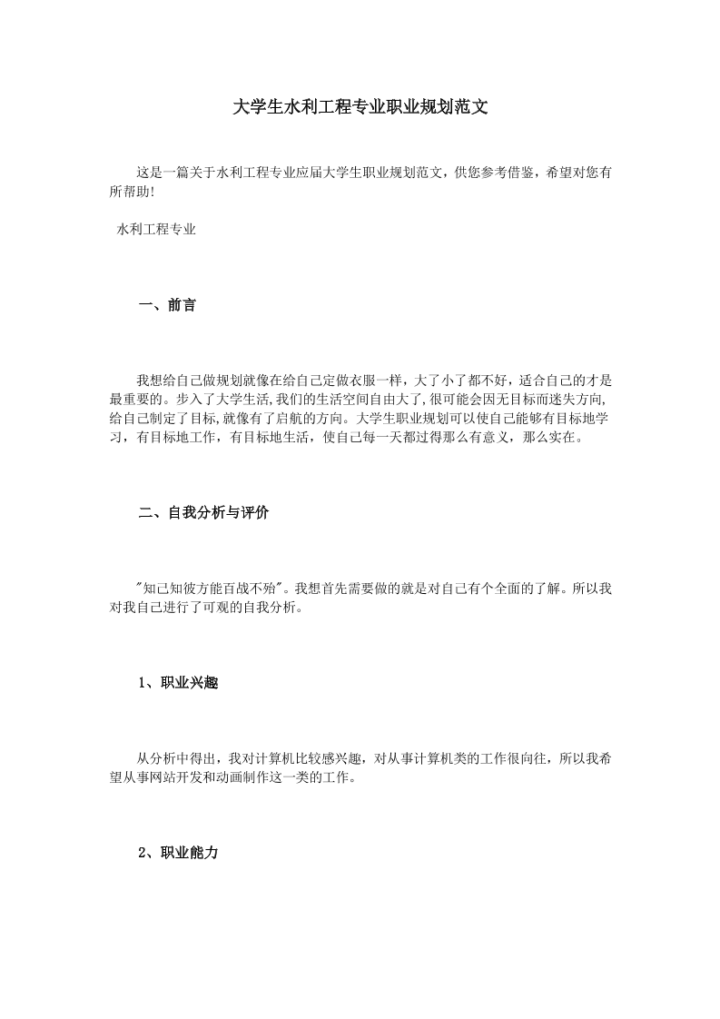 水利工程大学生职业生涯规划