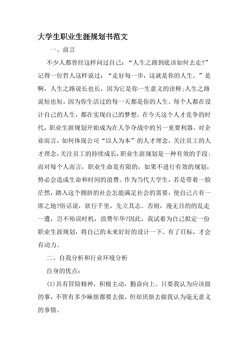 大学生职业生涯规划书