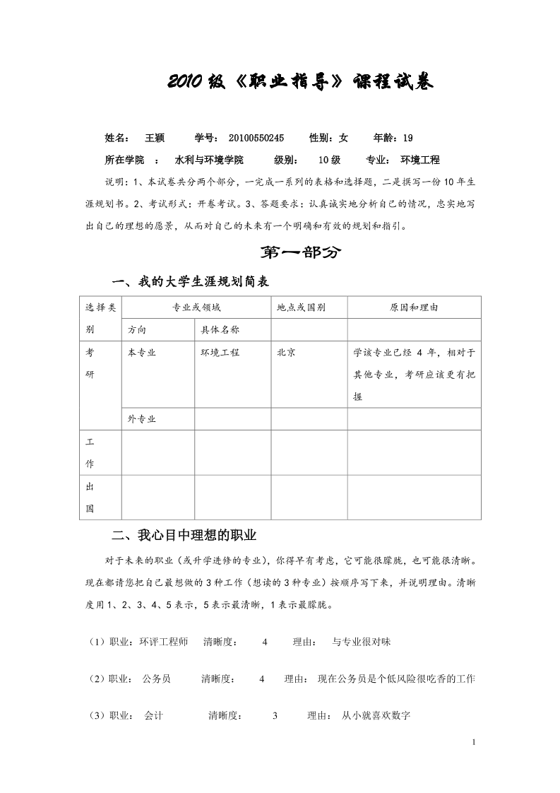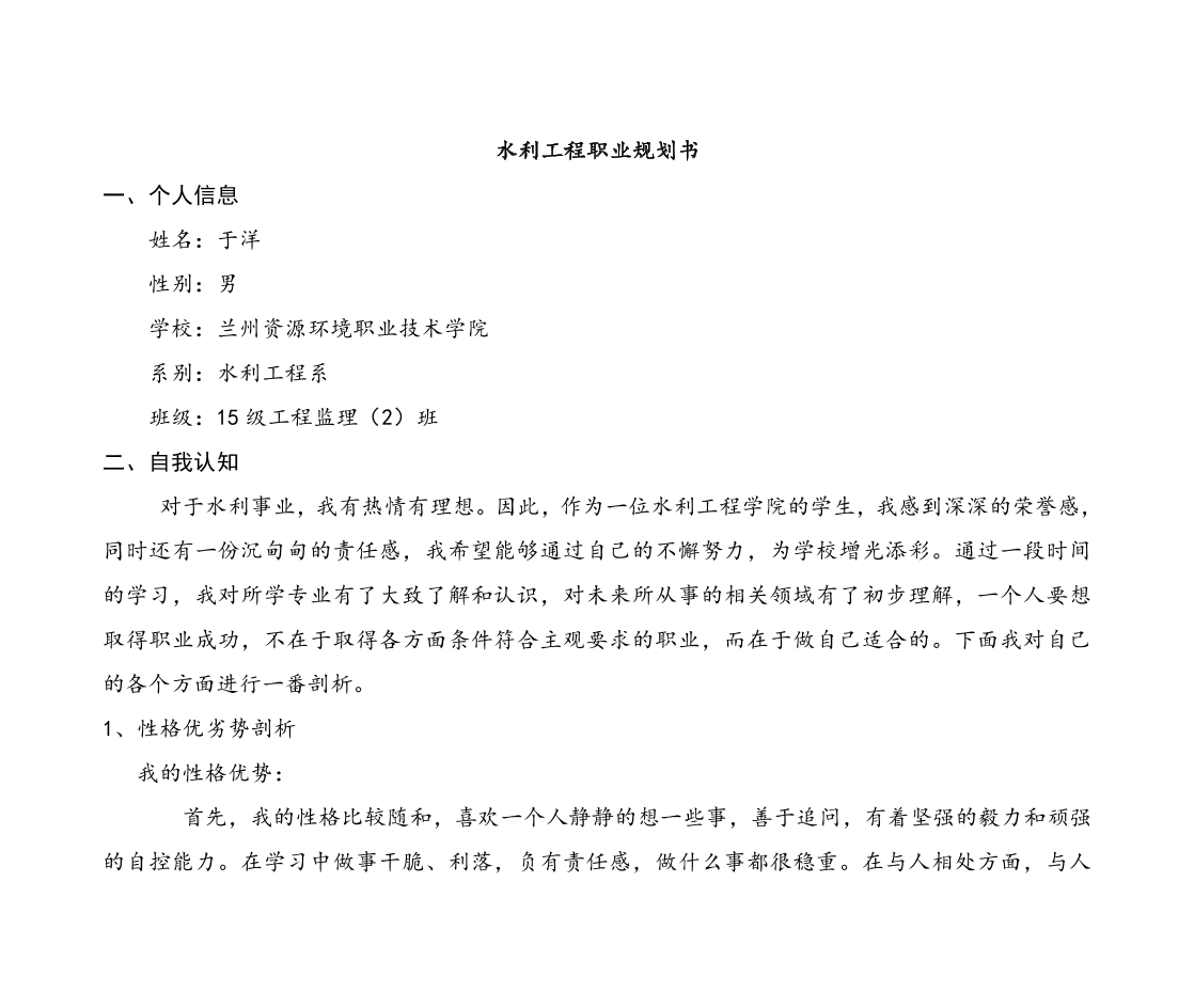 水利专业大学生职业生涯规划书2