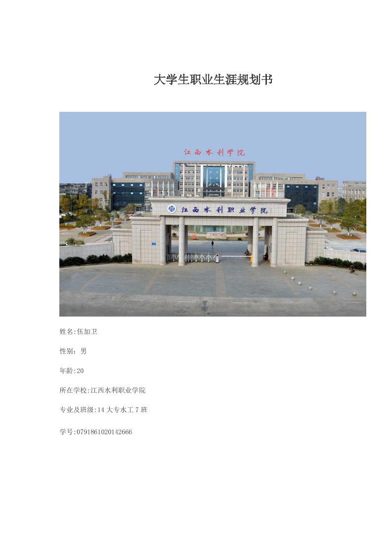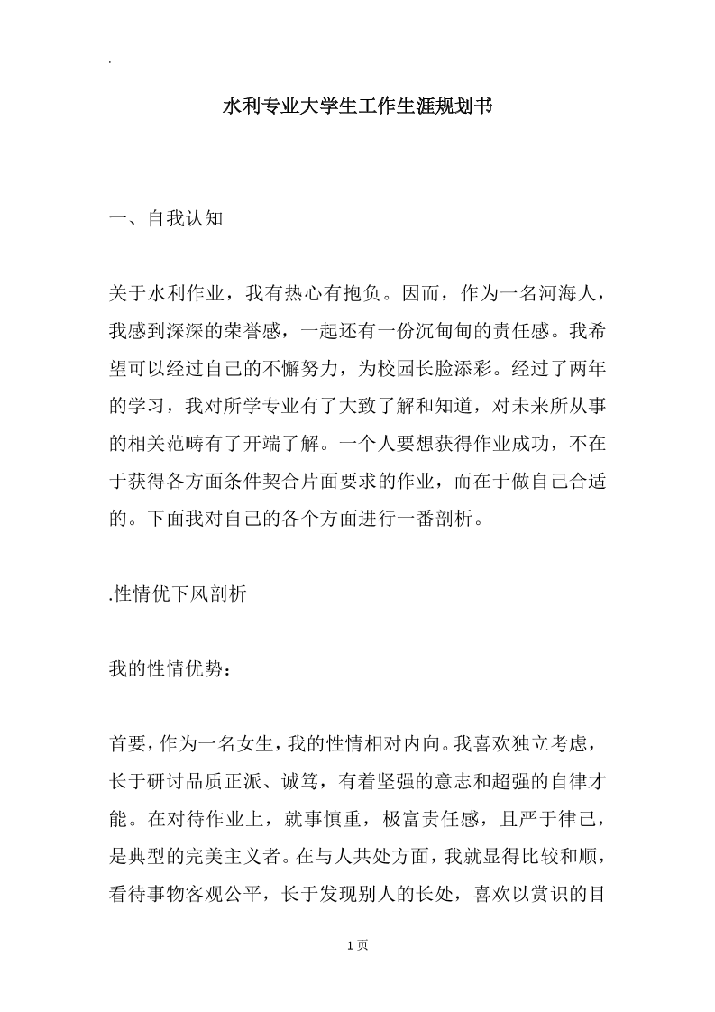 水利专业大学生工作生涯规划书