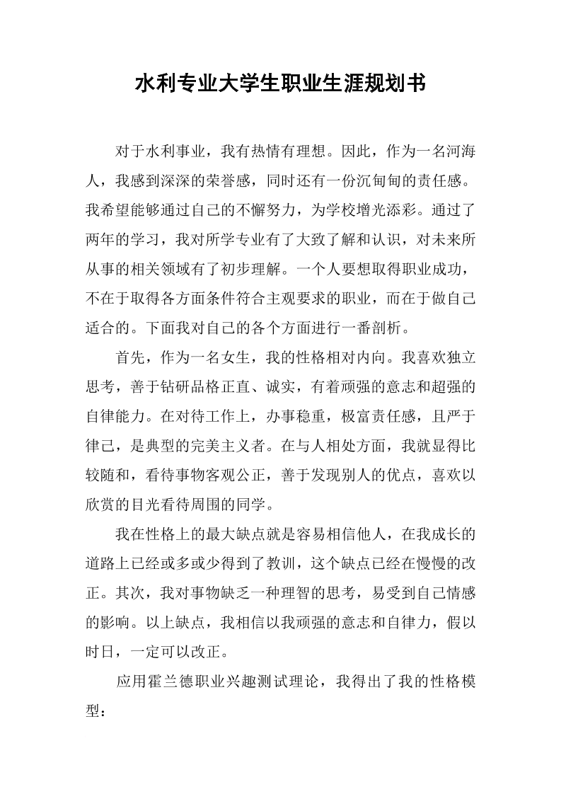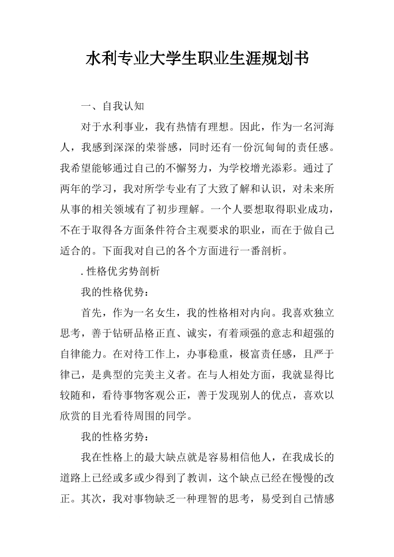 水利专业大学生职业生涯规划书