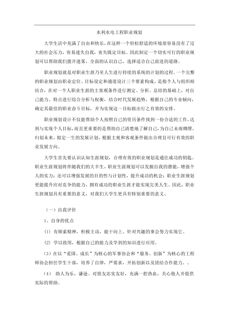 水利水电工程学生职业生涯规划