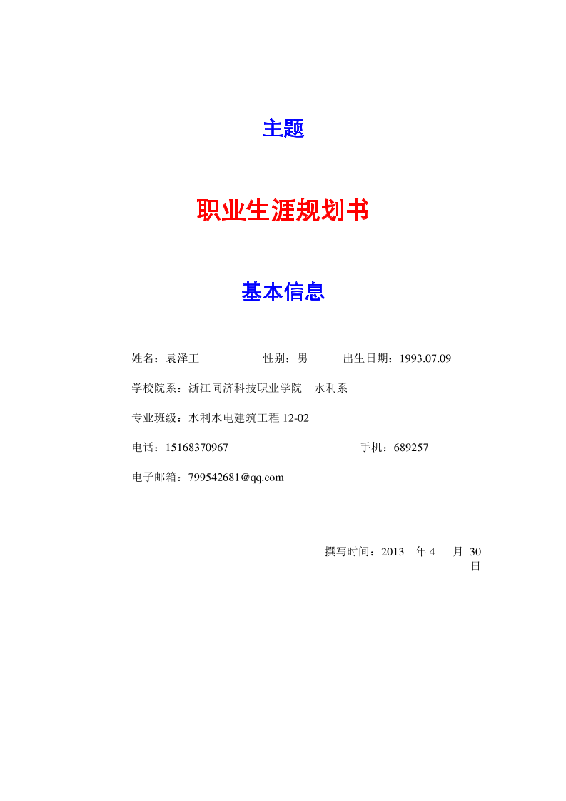 • 生涯规划书模板