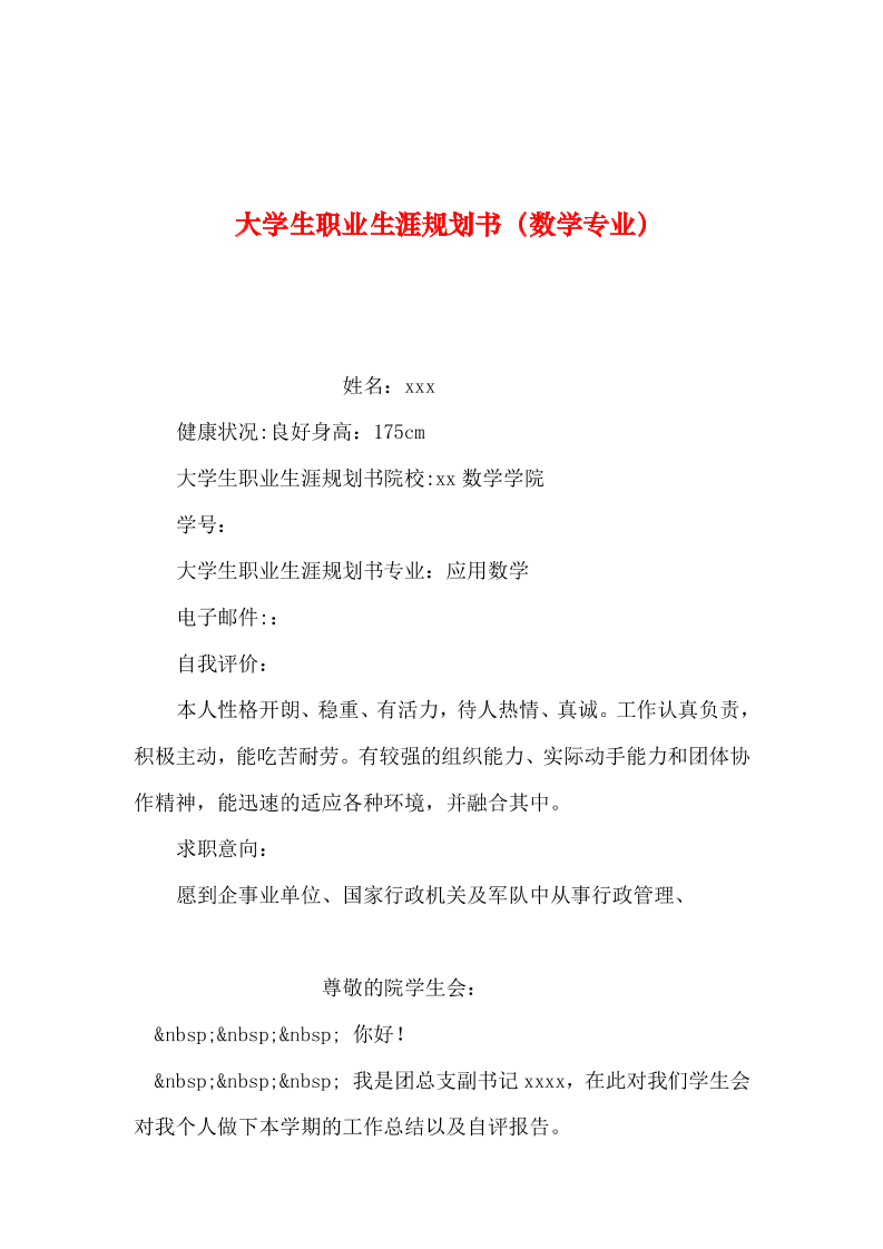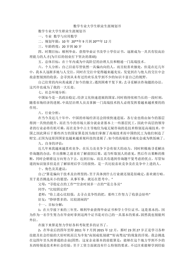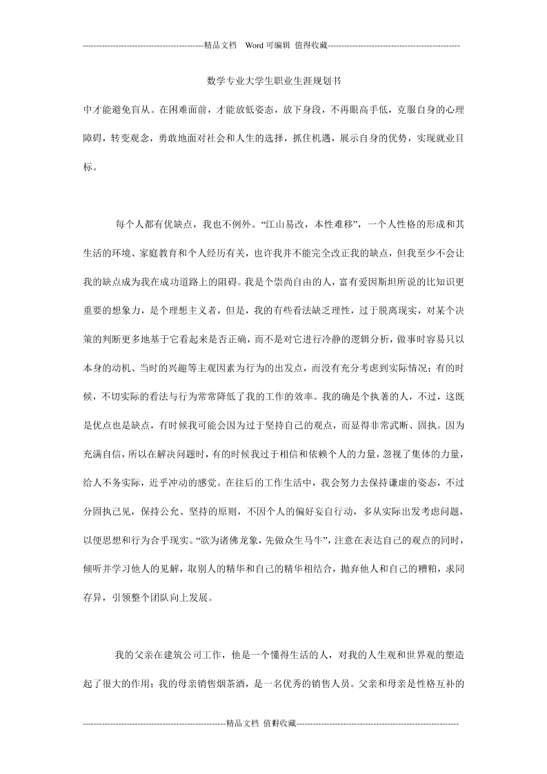 2019年整理--大学生职业生涯规划书(数学专业)-0