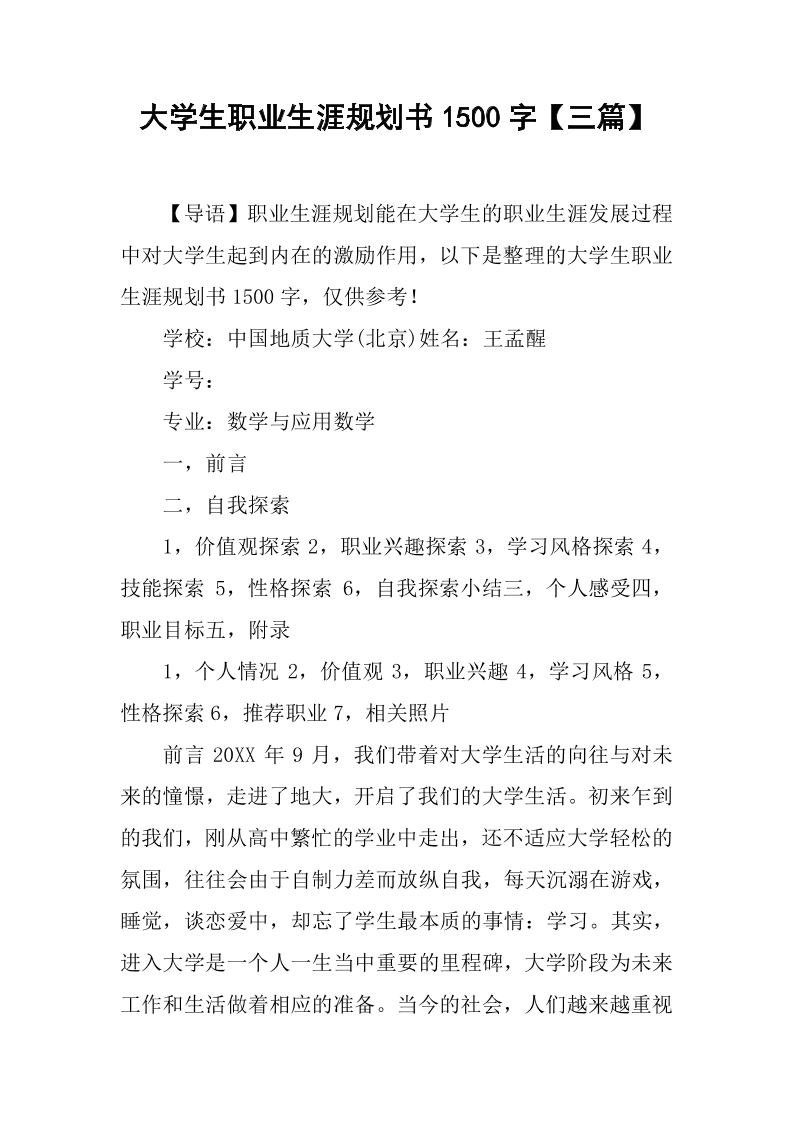 大学生职业生涯规划书1500字【三篇】