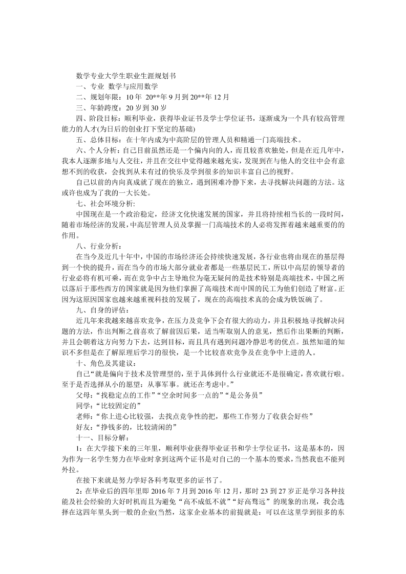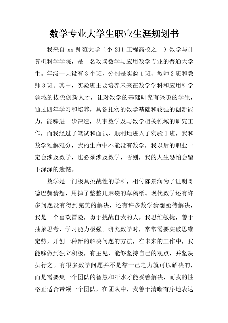 数学专业大学生职业生涯规划书1