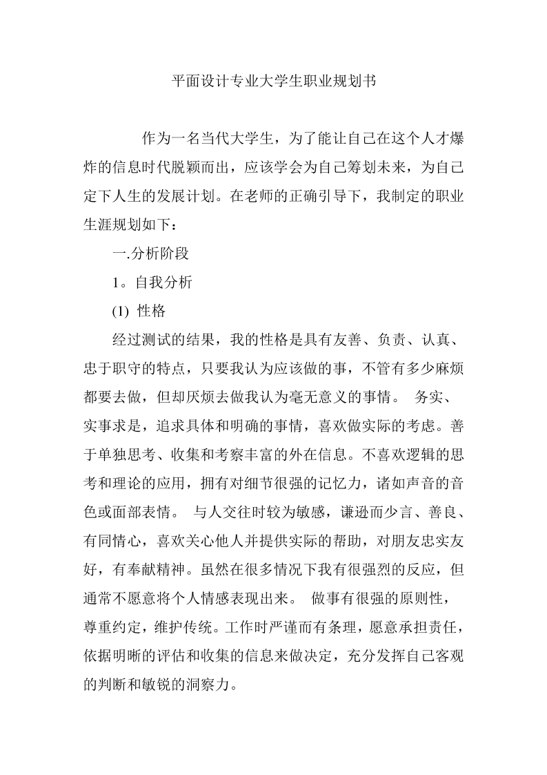 平面设计专业大学生职业规划书