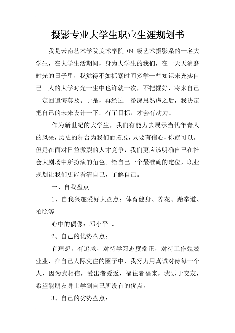 摄影专业大学生职业生涯规划书