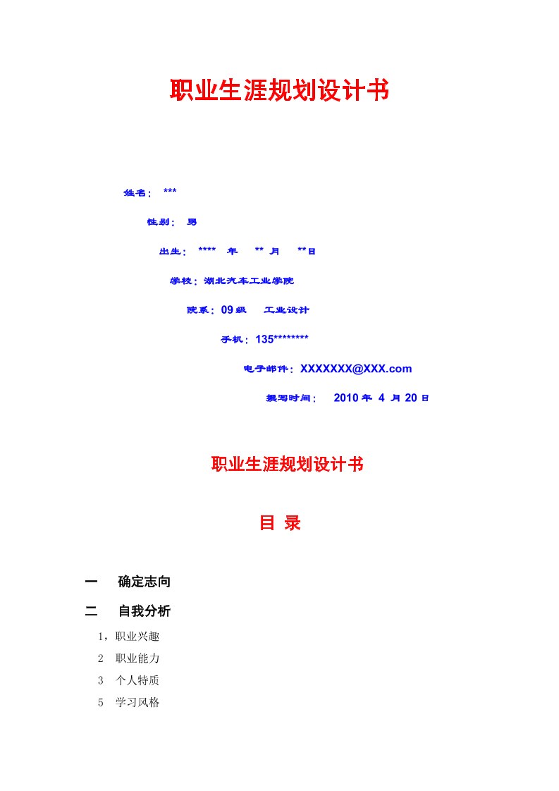 • 生涯规划书模板