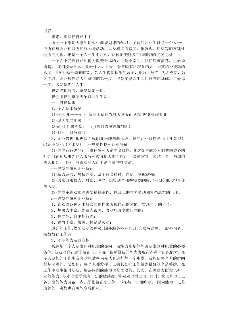财管职业规划书2000字