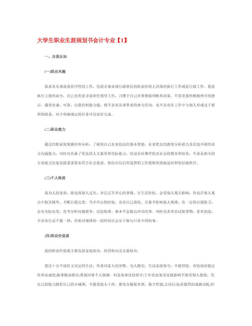 会计专业大学生职业生涯规划书-1