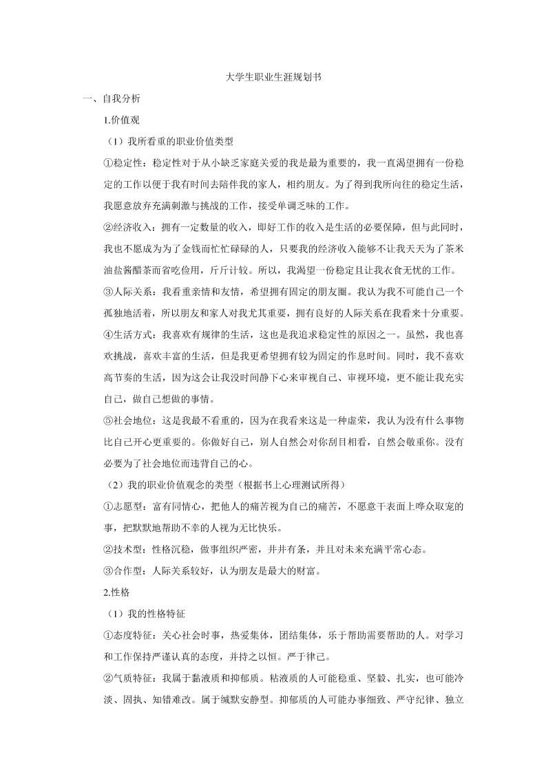 生涯规划书模板