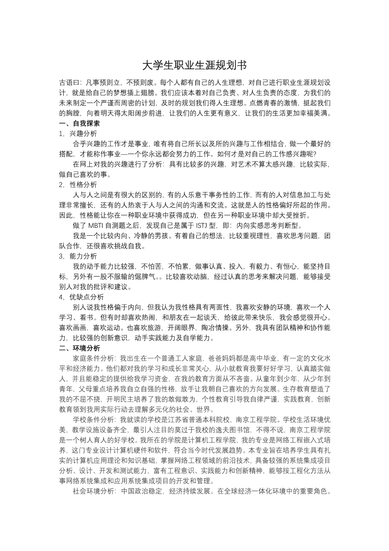 南昌工程学院计算机应用技术专业大学生职业生涯规划书