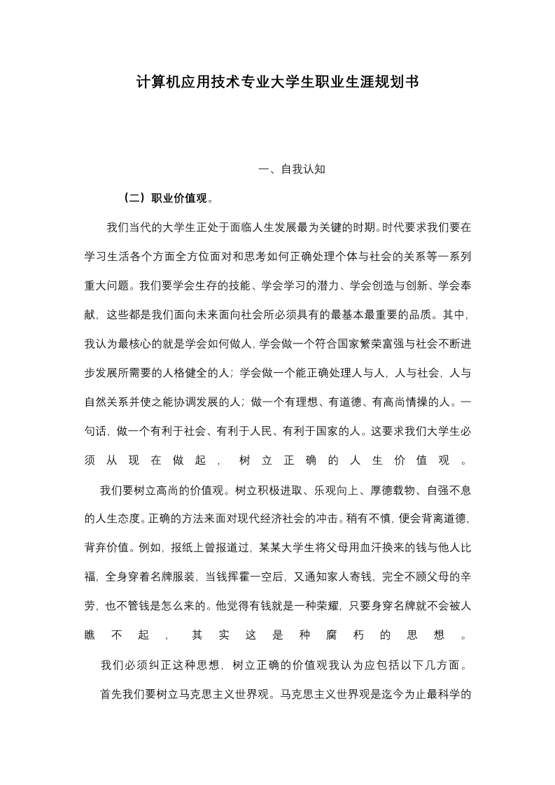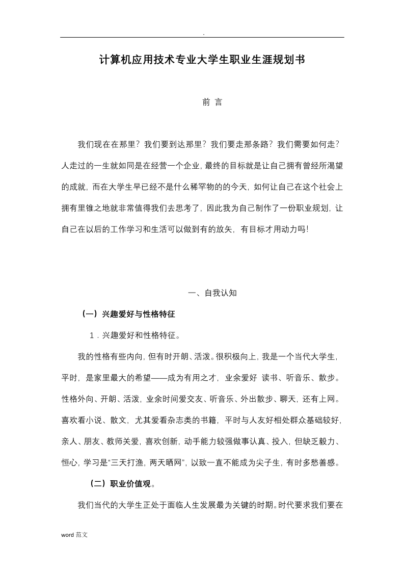 计算机应用技术专业大学生职业生涯规划书(1)