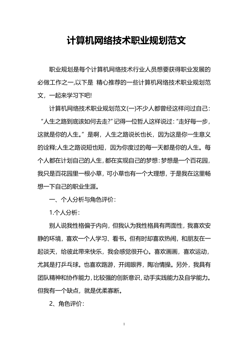 计算机网络技术职业规划范文