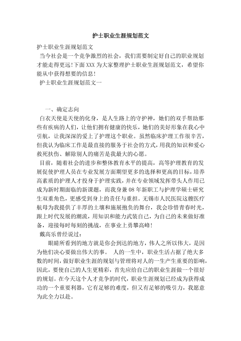 1、护 士 个 人 职 业 规 划