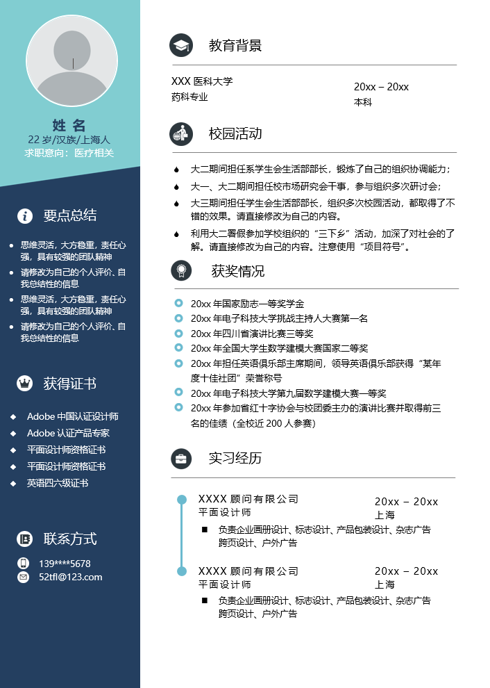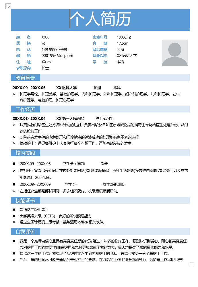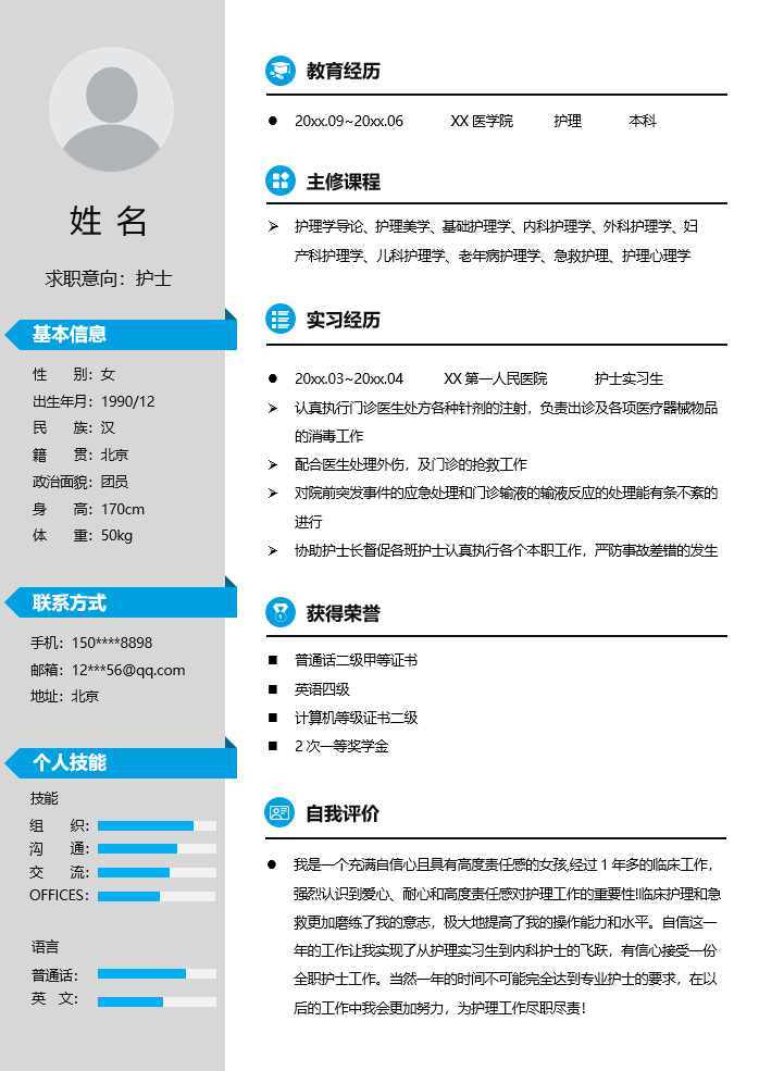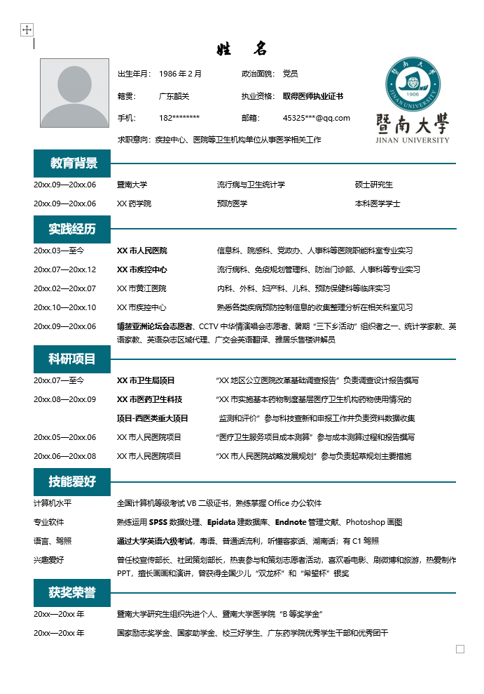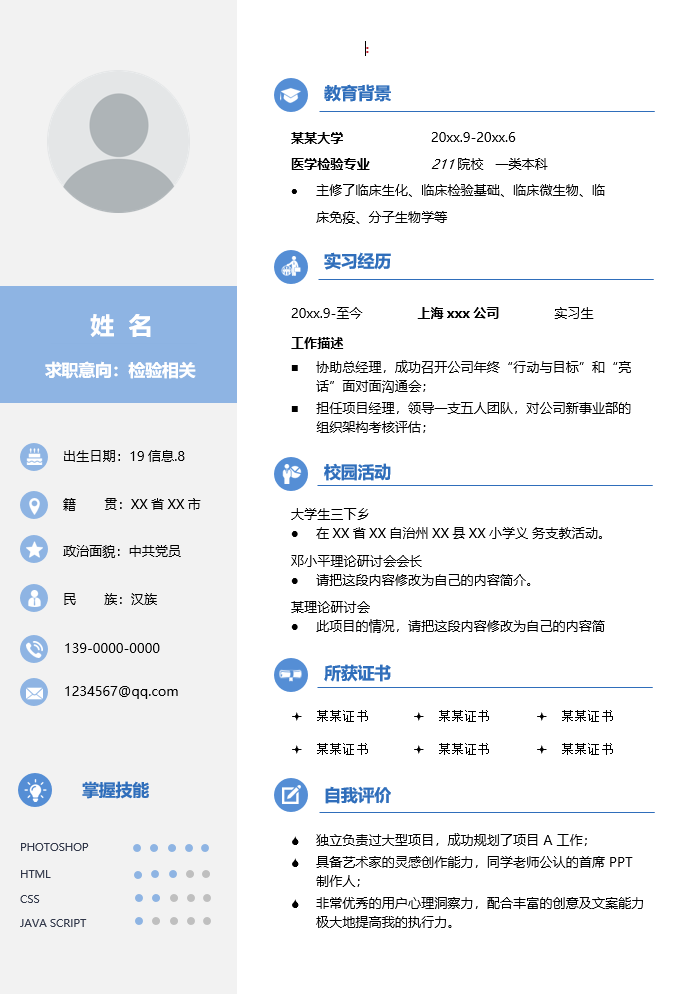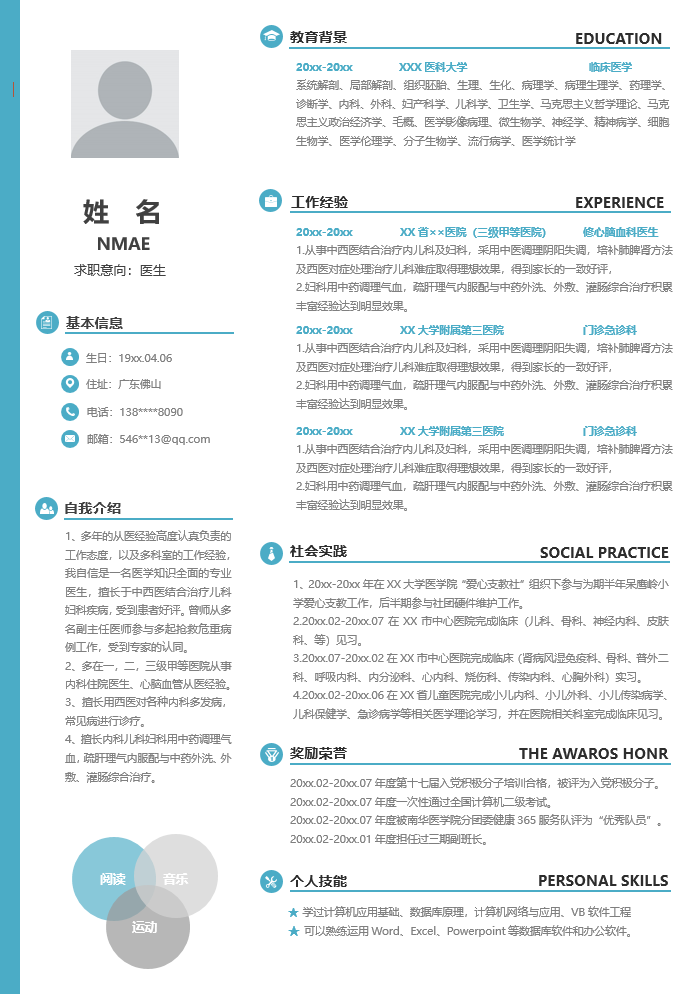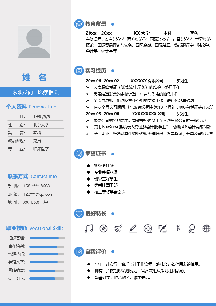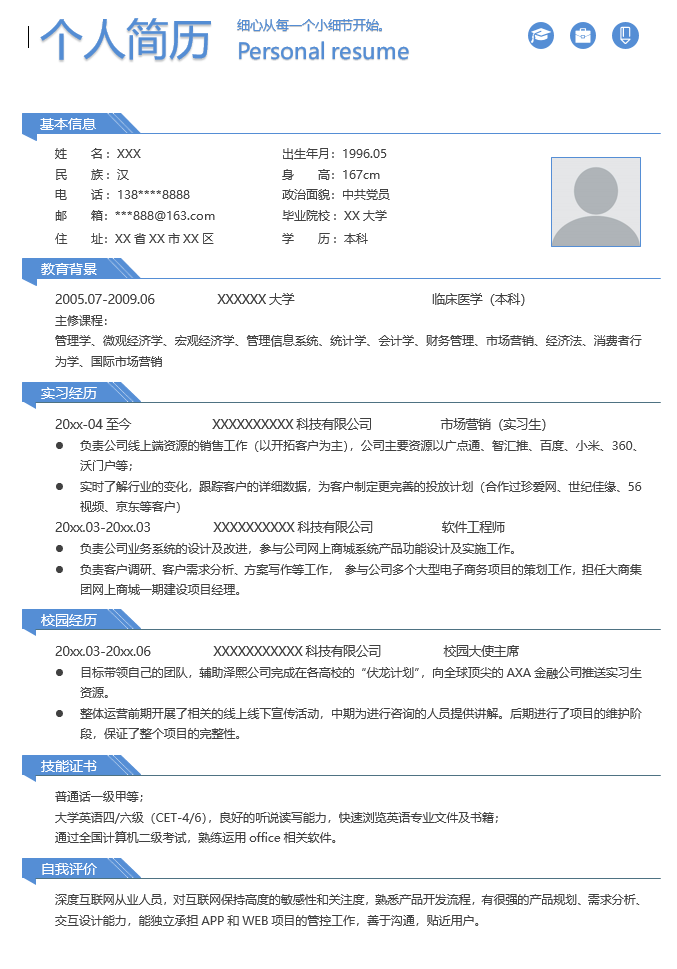 医疗健康简历模板-1