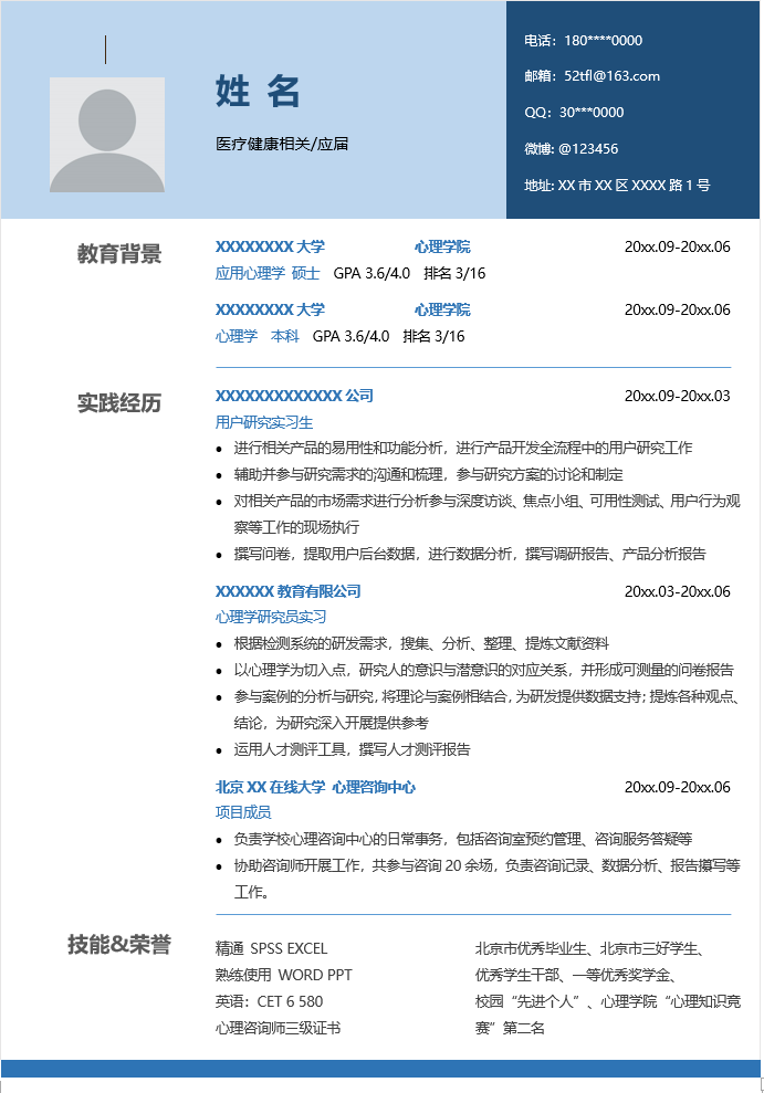医疗健康简历模板-3